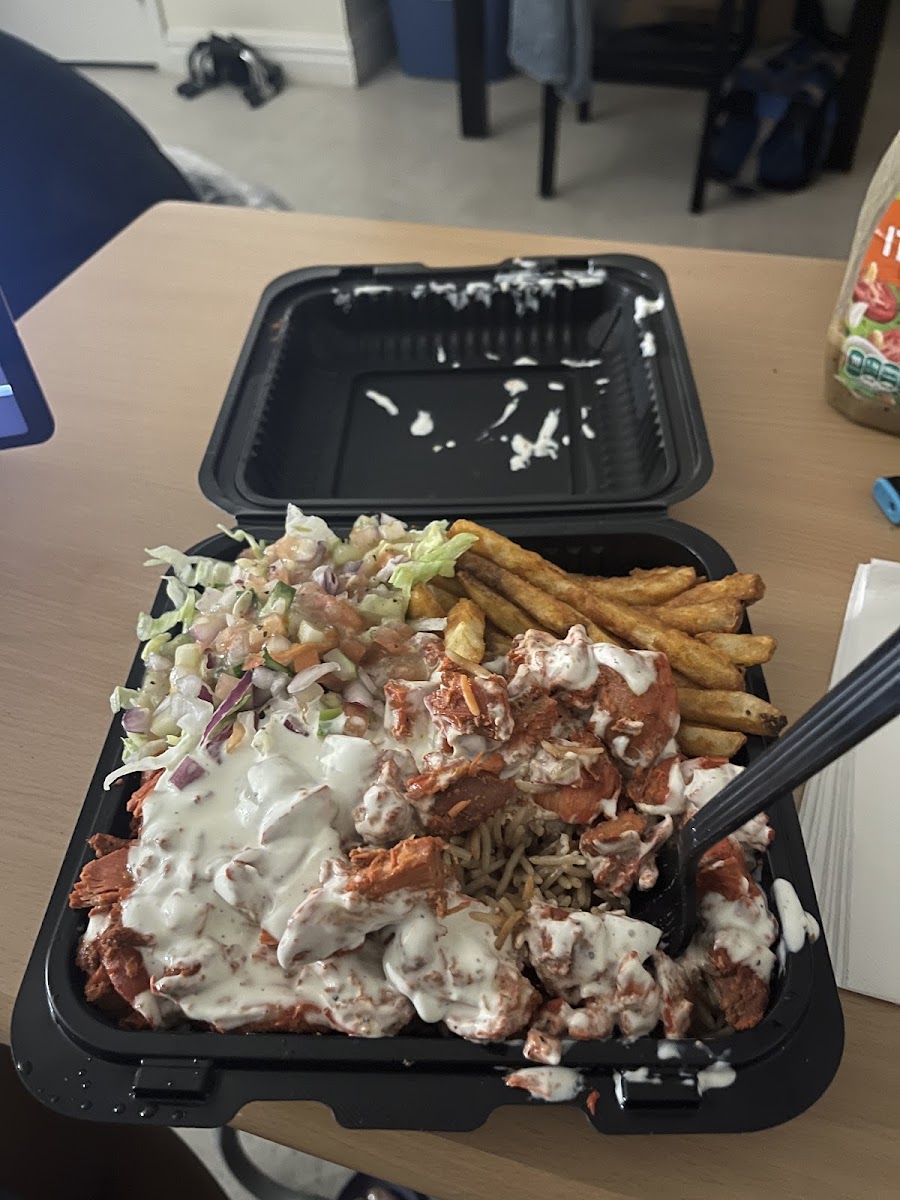 The menu is a delightful showcase of creativity, with each dish adeptly crafted to deliver a burst of flavor. The Falafel Gyro and Fish Gyro, both priced at just $9.99, are local favorites that promise to transport you to culinary bliss. The crispy falafel is perfectly seasoned and nestled within soft pita, while the fish gyro features tender, flaky fish, enhanced by a drizzle of their signature Krazy sauce. It's no wonder that customers like Yudriana De La Rosa can't stop raving about the fried whiting fish — it's as if they’ve discovered a hidden treasure!